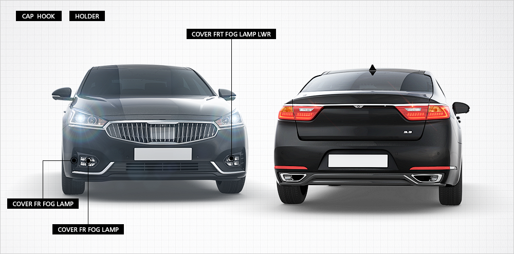 HOME | 제품소개 | 제품 4 제품 4 제품안내 COVER FR FOG LAMP COVER FR FOG LAMP COVER FRT FOG LAMP LWR CAP HOOK HOLDER